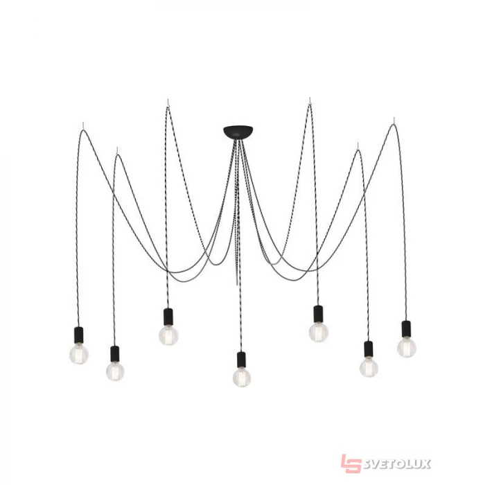 Стиль - Лофт; Страна производитель - Польша; Количество источников света - 7; Направленность света - В сторону/Вниз; Тип цоколя - E27; Максимальная мощность светильника (Вт) - 420; Максимальная мощность лампы (Вт) - 60; Напряжение сети (В) - 220; Материал основы - Металл/Текстиль; Цвет основы - Серый; Высота (мм) - 3000; Класс пылевлагозащиты IP - IP20; Сменный источник света - Да; Поворотный плафон - Нет; Тип - Люстра паук; Назначение - Для гостиной/Для кухни; Тип крепления на потолок - Монтажная планка.