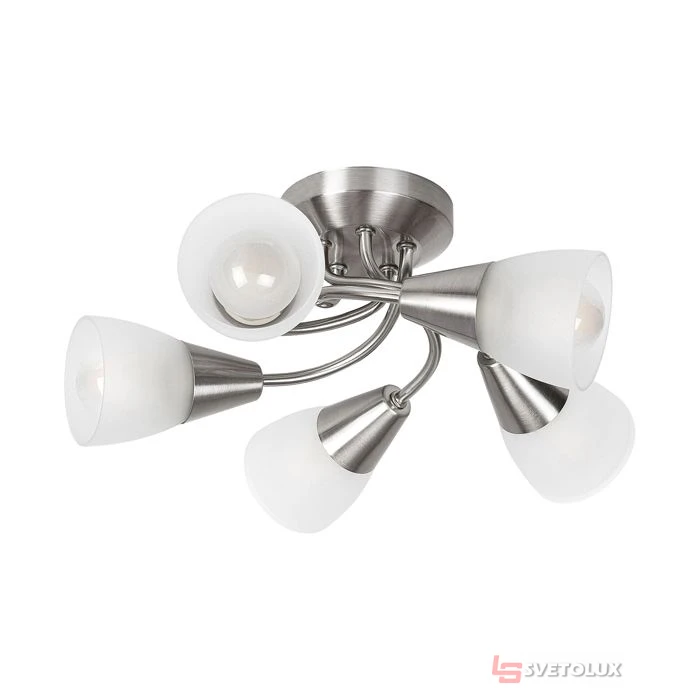 Стиль лампы – Стандарт. Рекомендуемая комната для использования – гостиная, кабинет. Светодиодная технология – нет. Защита IP - IP20. Цвет лампы – сатиново хромовый. Материал лампы – металл. Цвет абажура – стекло опал. Материал абажура – екло. Гарантия (год) – 1. Чапстины розеток – 5. Тип розетки – E14. Технические данные светильника – E14 5x MAX 40W. Используемое напряжение – 230V, 50Hz. Расстояние от потолка (мм) – 145.0. Диаметр (мм) – 340.0. Индивидуальный размер коробки X (см) – 26.0. Индивидуальный размер окна Y (см) – 24.5. Индивидуальный размер коробки Z (см) – 13.0. Вес нетто (кг) – 1.04. Вес брутто - 1.24. Артикул плафона - 19654. Класс защиты - I. Арт.: P26-5691