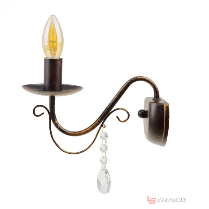Настенное бра свечка BCL-734W/1 E14 BK/G предназначено для дополнительного освещения спальни, гостиной или холла. Модель черного цвета выглядит просто, но в то же время стильно. Ее конструкция включает металлическое основание, держатель патрона, хрустальный декор. Бра изготовлено в форме настенного подсвечника, у него нет плафона. Для работы светильника требуется одна лампочка с цоколем Е14 мощностью 40 Вт. Можно использовать светодиодные, энергосберегающие или обычные лампы накаливания. Для бра с такой конструкцией и без плафона лучше выбрать лампочки в форме свечи или свечи на ветру. Компактные размеры светильника позволяют устанавливать его в помещениях различной площади. Бра предназначено для работы в сети 220 В. Оно монтируется на стену с помощью монтажной планки. Такой светильник отлично дополнит люстры этой же серии, артикулы моделей на 5 и 8 лампочек 24-589 и 24-590.