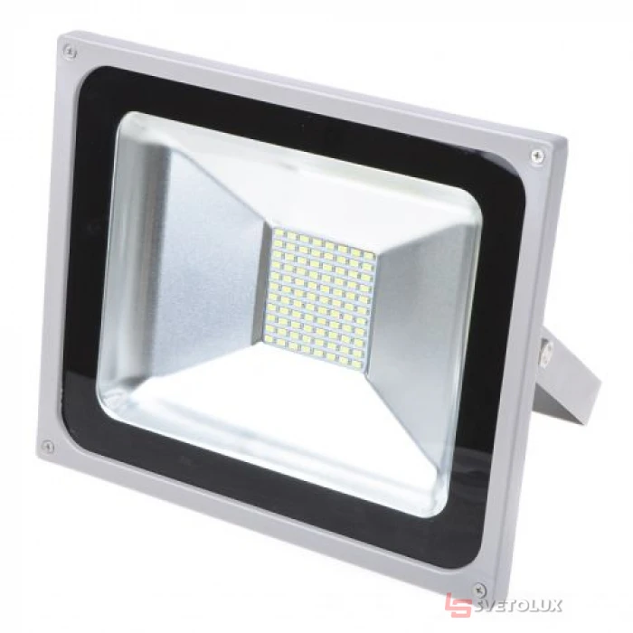 Данный светодиодный прожектор - отличный вариант для тех, кому нужно осветить архитектурное сооружение, фасад своего дома, кафе, магазина, придать яркого акцента какому-нибудь зданию. Прожектор является эквивалентом галогенного светильника мощностью 400 Вт. Конструкция выполнена в металлическом корпусе черного цвета, более того, его поверхность защищена термостойким закаленным стеклом. Это поможет сохранить устройство в рабочем состоянии и защитить его от внешних повреждений. Источником света для прожектора служат 60 светодиодов, излучающие ровный нейтральный белый свет со световым потоком 3000 лм. Мощность светильника составляет 50 Вт, а угол рассеивания света – 120 градусов. Светильник может работать бесперебойно при напряжении 120 - 240 В. Благодаря небольшим размерам и монтажной скобе, крепить такой прожектор можно как горизонтально, так и вертикально. Он имеет защиту IP65, что в свою очередь означает, что прожектор защищен от проникновения пыли и твердых посторонних предметов, а также от проникновения воды. Дополнительно прожектор имеет встроенный драйвер со стабилизацией напряжения (CCD).