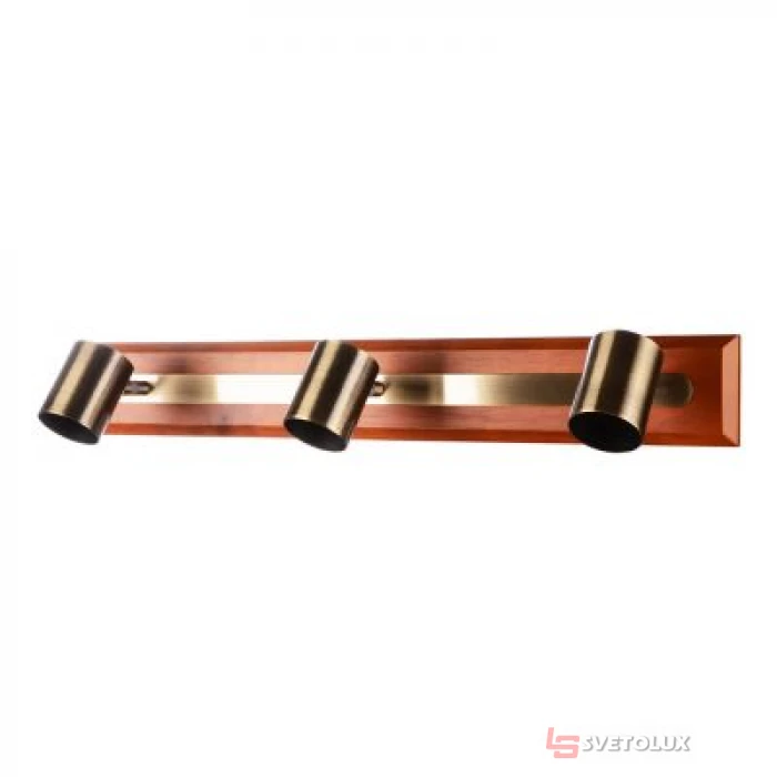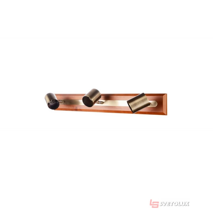 Цоколь - GU10; Напряжение, V - 220V; Количество ламп - 3; Монтаж - Накладной; Степень защиты оболочки, IP - IP20; Материал каркаса - Металл/Дерево; Цвет каркаса - Коричневый; Цвет плафона - Матовый никель; Материал плафона - Металл; Высота, h - 130mm; Ширина, b - 550mm; Длина, L - 80mm.