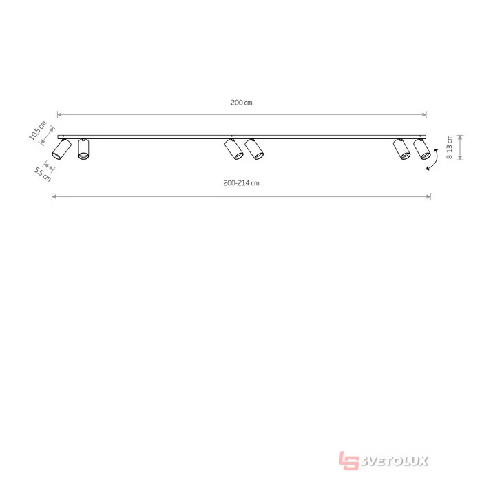 Основной цвет светильника – белый. Тип цоколя – GU10. Количество ламп – 6. Максимальная мощность лампы, Вт – 10. Высота, мм – 130. Ширина, мм – 2000, 2000. Длина, мм – 2000, 2000. Высота плафона, мм – 105. Поворотный плафон – да. Выключатель – нет. Вес, кг - 2. Объем, dm3 - 14. Коллекция: MONO. Арт.: P23-7777.