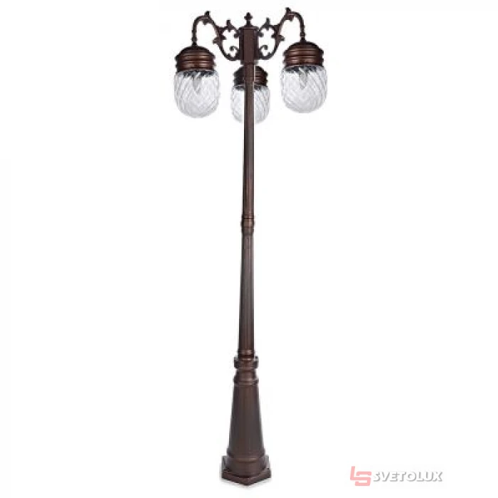 Для освещения улиц города, автомобильных дорог, тихих двориков на краю города, вечно спящих кварталов уже более трех столетий используют разного рода уличные светильники. Несомненным лидером среди всех остальных осветительных приборов является его величество уличный фонарь. Это и не странно, ведь именно с него началась история освещения улиц города в ночное время суток.Сейчас стало очень модным освещать собственные приусадебные участки с помощью фонарей. Садово-парковый светильник или, как его еще называют, уличный фонарь GL-97 E-3 BK/Red изготовлен из металла и стекла, его дизайн лишен изобилия декоративных элементов, всего пару кованых элементов в форме завитков на держателях, соединяющих плафоны с ножкой, и все.Конструкция фонаря состоит из металлической ножки-столба и трех стеклянных прозрачных рифленых плафонов в металлической основе. Всего три лампы с цоколем Е27, и светильник готов к работе. Рассчитан он для работы в сети переменного тока с номинальным напряжением 220В.Будьте уверены в том, что светильник будет служить вам на протяжении многих лет, не утратив свою актуальность. Уже с первых дней, а точнее ночей, работы данного светильника вы убедитесь в том, что сделали правильный выбор.