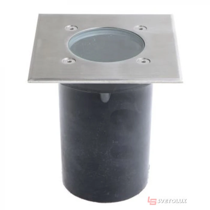 Светильник уличный встраиваемый LG-10 наездной. Подобные светильники устанавливаются в дорожное покрытие. Симметрический зеркальный отражатель гарантирует превосходную освещённость. Крышка светильника представляет собой литую алюминиевую рамку с противоударным закалённым стеклом. По причине того, что в состав сплава входит совсем незначительное количество меди, он устойчив к коррозии. Эти светильники выдерживают тяжесть до 2500 кг. Они незаменимы при освещении садов, пешеходных дорожек, аллей и архитектурных компонентов строений. Светильник водонепроницаем, однако не предназначен для установки под водой. В этом светильнике используется галогенная лампа мощностью 20 Вт. От обычных ламп накаливания галогенные отличаются тем, что в их баллонах содержатся особые газы — пары галогенов. Это повышает срок службы лампы, а также температуру спирали, что в свою очередь повышает светоотдачу. Поэтому такие лампы горят ярче, чем обычные лампы при одном и том же номинальном напряжении питания. Кроме того, предметы, освещённые галогенными лампами, выглядят насыщенней и ярче.