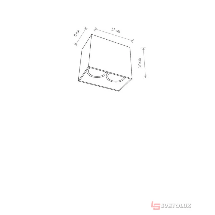 Размеры: 10 / 11 / 6 см. Лампы: 2шт x 35Вт (GU10). Плафон: Алюминий (aluminium) / Черный (black). Основание: Алюминий (aluminium) / Черный (black). Влагозащита: IP20. Лампа в комплекте: Нет лампы. Питание от сети 220в.
