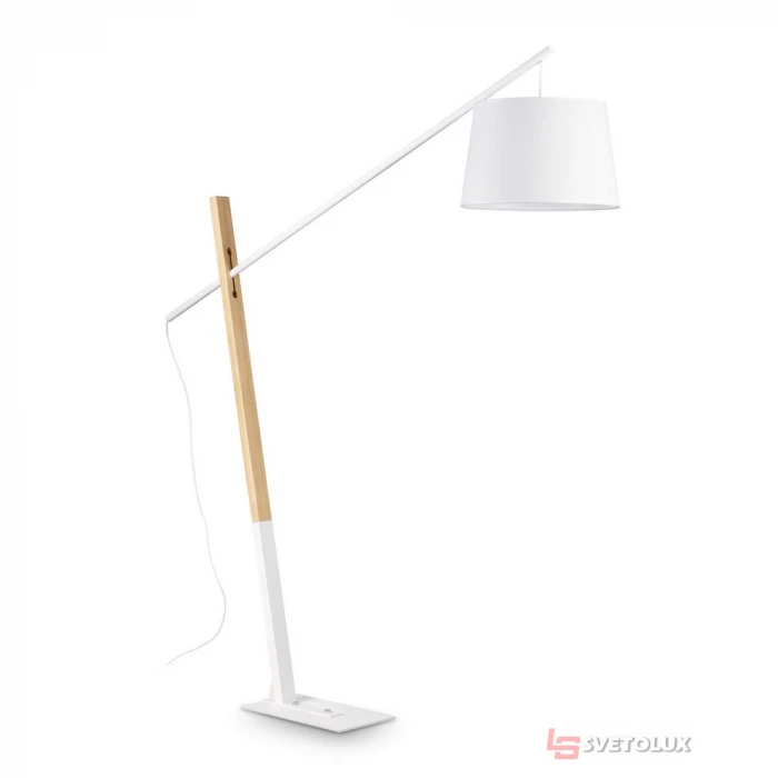 Арматура из металла порошковой окраски белого или чёрного цвета. Шест из натурального дерева. Абажур из ПВХ покрыт тканью. Провод покрыт тканью с выключателем. Размеры: L 1660 x H 2300 x P 420 mm. Лампочка: E27 max 1 x 60W. Класс защиты: IP20. Коллекция: Eminent collection. Арт.: P11-207582