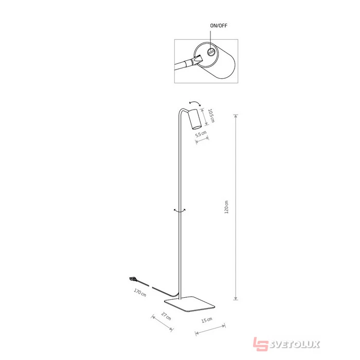 Основной цвет светильника – черный. Тип цоколя – GU10. Количество ламп – 1. Максимальная мощность лампы, Вт – 10. Высота, мм – 1200. Ширина, мм – 150. Высота плафона, мм – 105. Поворотный плафон – да. Выключатель – есть. Вес, кг - 2. Объем, dm3 - 17. Коллекция: MONO. Арт.: P23-7717.