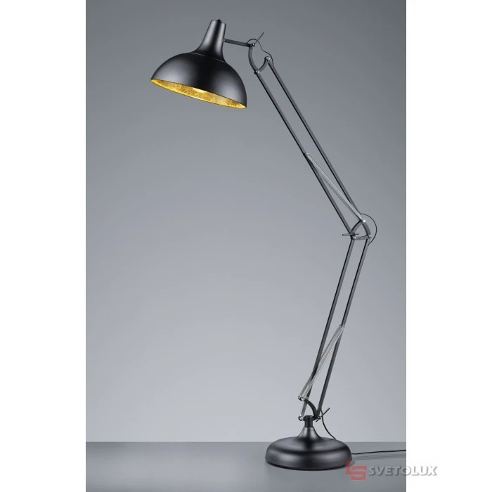 Основание: Металл/Черный матовый. Лампа основная: Цоколь - 1 x E27; Питание от сети (В): 230. Размеры: Длина (см) - 38, Высота (см) - 180, Ширина (см) - 75.Вес (кг): 13,455. Влагозащита: IP20. Остальное: Ножной выключатель. Регулируемая высота. Арт.: P48-R46061032