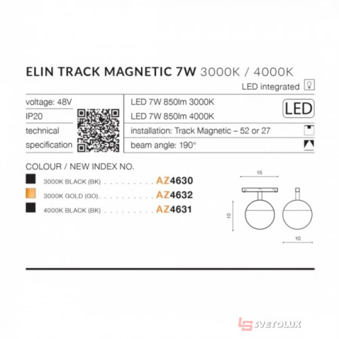 Общая информация о товаре Azzardo ELIN track MAGNETIC 7W 3000K BK AZ4630