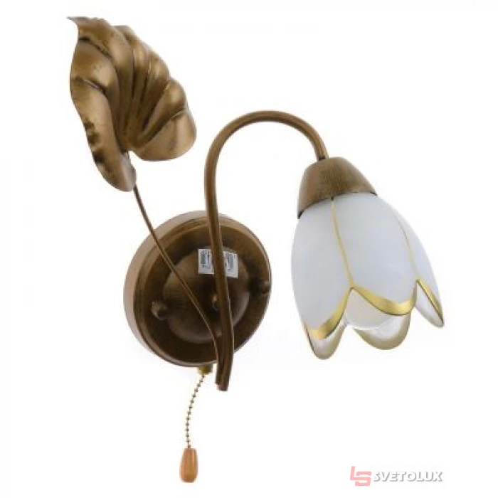Цоколь – E14; Потужність – 60W; Напруга, V - 220V; Кількість ламп – 1; Ступінь захисту оболонки, IP – IP20; Матеріал каркасу – Метал; Колір каркасу – Старе золото; Колір плафона – Білий; Матеріал плафона – Скло.