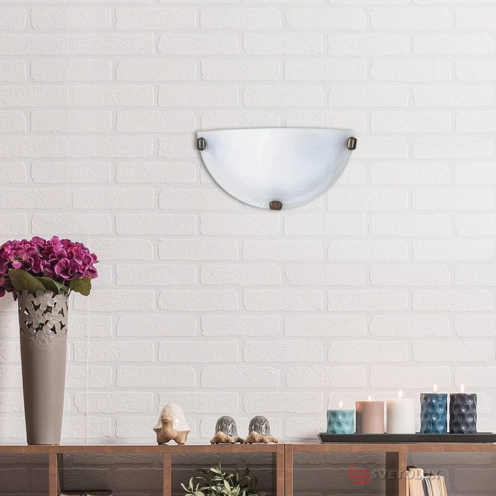 Тип лампи: Розжарювання, Кількість ламп: 1, Цоколь: E27, Потужність лампи: Вт 60, Ступінь захисту: IP20, Дизайн: Модерн, Геометрія плафона: Півколо, Колір плафона: білий, Колір основи: бронзовий, Матеріал плафона: скло, Матеріал основи: метал, Діаметр: см 30 Арт.: P26-3003