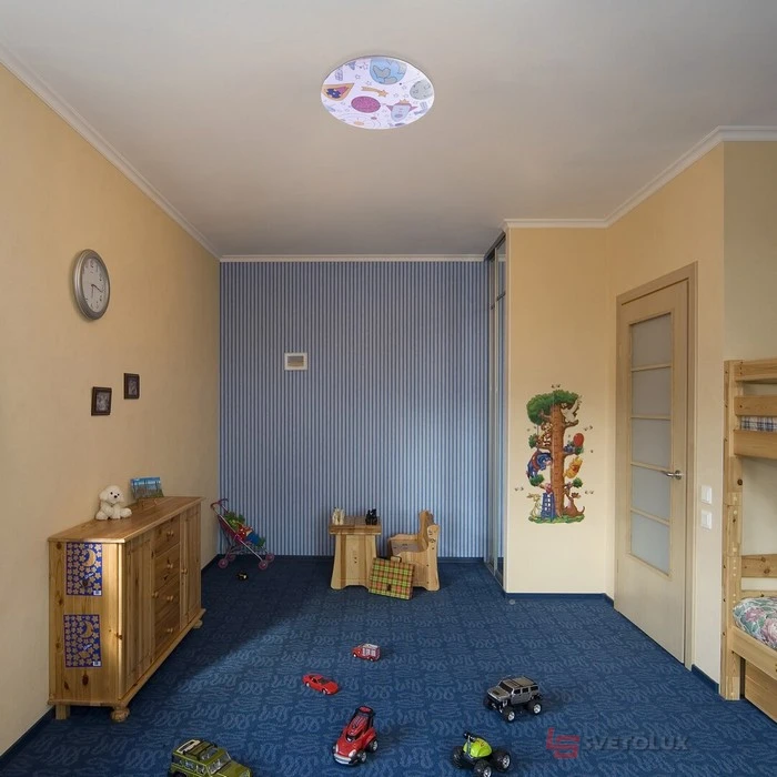 Стиль лампи — Дитяча лампа. Рекомендована кімната для використання — дитяча кімната. Колірна температура джерела світла — теплий білий. Світловий потік джерела світла (lm) — 1560. Світлодіодна технологія — так. Захист IP — IP20. Колір лампи — білий. Матеріал лампи — метал. Колір абажуру — багатокольоровий. Матеріал абажуру — пластмаса. Термін служби лампи (h) — 25000. Гарантія (рік) — 5. Зважене споживання енергії (kwh/1000 Ah) — 24.0. Технічні дані світильника — LED 24W. Використована напруга — 230V, 50Hz. Відстань від стелі (мм) — 70.0. Діаметр (мм) — 380.0. Індивідуальний розмір коробки X (см) — 8.0. Індивідуальний розмір вікна Y (см) — 39.5. Індивідуальний розмір коробки Z (см) — 39.5. Вага нетто (кг) — 1.1. Вага брутто — 1.24. Колірна температура джерела світла (K) — 3000. Артикул плафону — 19811. Власний Дизайн: R?balux — так. Клас захисту — I. Арт.: P26-3417