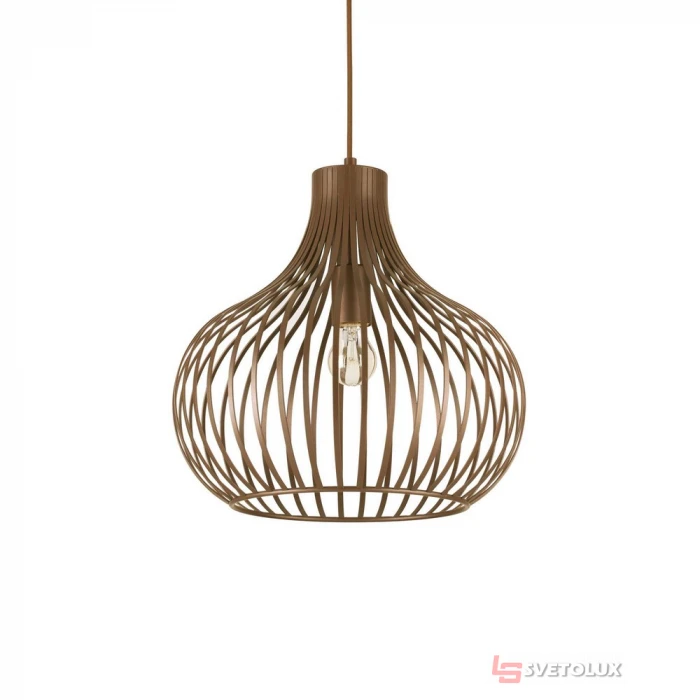 Структура з металу коричневої фарби ефекту металу. Провід з тканини. Розміри: D 380 x H min 625 / max 2375 mm. Лампочка: E27 max 1 x 60W. Клас захисту: IP20. Колекція: Onion collection. Арт.: P11-205298
