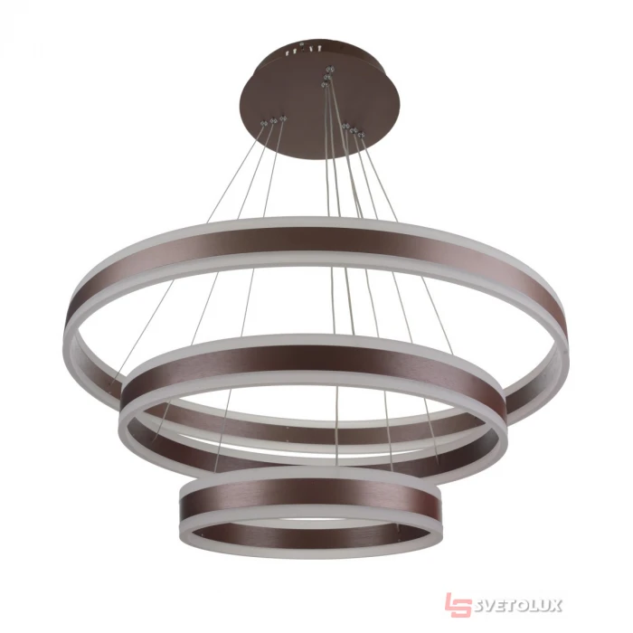 Люстра BR-949S/3 440W це світлодіодний світильник, який ідеально підійде як для дому, так і для офісу, готелю, бару, ресторану, торгового або адміністративного будинку. Лед люстра прекрасно впишеться в спальню, дитячу, передпокій, зал, кабінет або на кухню. Купити Лед люстру можна в приємному коричневому кольорі. Вона випромінює регульований світловий потік. Система CCT дозволяє змінювати колір світіння від холодного до теплого. Ця функція управляється без допомоги пульта, одним вимикачем. Крім того, після виключення світильника на певному кольорі, система запам'ятовує його і наступного разу включає саме цей відтінок. Конструкція люстри складається з трьох кіл різного діаметру, які з'єднані разом. Кола повернені різними гранями, що в сукупності створює неповторну конструкцію кілець один в іншому. Люстра прекрасно поєднується з сучасним стилем, хай-тек, лофт, модерн, класика. Розмір кілець світильника: 800х600х400 мм. Кільця кріпляться до основи, розташованої на стелі, за допомогою проводів. Тип монтажу накладної, встановлюється до поверхні за допомогою монтажної планки. Потужність люстри становить 440 Вт. У ній задіяні три джерела світла. Кількість люмен на ВАТ становить 60 Лм/Вт. Індекс передачі кольору 80 Ра. Цей світильник стане незабутнім джерелом світла і прикрасою інтер'єру. має значні розміри і підвісні елементи, тому найкраще буде виглядати в об'ємній кімнаті з високими стелями.