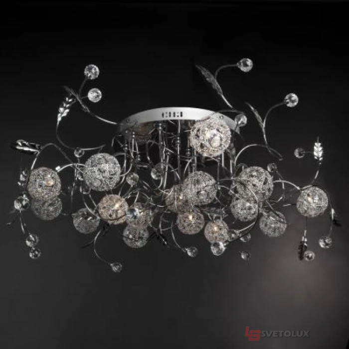 Люстра в сучасному стилі BKL-709S/16 CHR може похвалитися своєю екстравагантністю та неординарністю. Її конструкція щільно прилягає до стелі, виглядає компактно і ненав язливо. Виготовлена вона з металу і скла, добре пропускає світло, роблячи його м яким, злегка приглушеним, здатним надати приміщенню затишок і комфорт. Що стосується дизайну люстри, то тут майстри постаралися на славу. Тут і скляні прозорі камінчики, і хромоване покриття, що дає люстрі додатковий блиск, і металеві декоративні елементи у формі невеликих пелюсток. Люстра обладнана 16 маленькими плафонами у формі кулі. Плафони з безліччю зазорів, через які у включеному стані люстри буде пробиватися світло. До того ж, даний освітлювальний прилад має три режими освітлення, які перемикати ви зможете як за допомогою пульта управління, так і за допомогою звичайного вимикача. При першому режимі загорається 1 3 частина лампочок, при другому – 1 2, а при третьому – горить вся люстра. Таким чином, ви зможете регулювати яскравість освітлення в залежності від ситуації, потреб і настрою. Повісити її можна як у вітальні, так і в іншій кімнаті. Для роботи люстри необхідно використовувати 16 галогенних капсульних ламп з цоколем G4 потужністю 20 Вт.