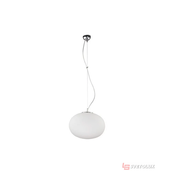 Стиль - Модерн; Країна виробник - Польща; Кількість джерел світла - 1; Матеріал плафона - Скло/Метал; Спрямованість світла - В сторону/Вниз; Тип цоколя - E27; Максимальна потужність світильника (Вт) - 100; Максимальна потужність лампи (Вт) - 100; Напруга мережі (В) - 220; Матеріал основи - Метал; Колір основи - Хром; Колір плафона - Білий; Ширина (мм) - 400; Висота (мм) - 1300; Клас пиловологозахисту IP - IP20; Змінний джерело світла - Так; Поворотний плафон - Ні; Тип - Люстри-підвіси; Призначення - Для вітальні/Для кухні; Тип кріплення на стелю - Стельовий гак.