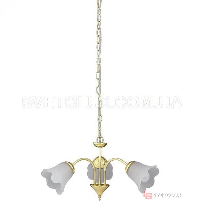 Технічні характеристики товару: Тип лампи: Розжарювання, Кількість ламп: 3, Цоколь: E14, Потужність лампи: Вт 40, Ступінь захисту: IP20, Дизайн: Класика, Геометрія плафона: Конус, Колір плафона: білий, Колір основи: золотий, Матеріал плафона: алебастрове скло, Матеріал основи: метал, Діаметр: см 50, Висота: см 28, Виступ: см 90 Арт.: P26-7233
