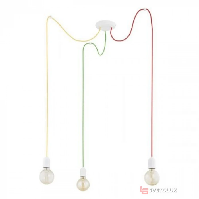 Тип: багатолампових. З особливостями: Регульована висота. Тип кріплення: Підвісні. Сучасний, Лофт. Геометрія: Без плафона. Вид плафона: Без плафона. Кріплення: На дюбеля. Ширина, мм: 360. Висота, мм: 1800. Матеріал арматури: Метал. Колір арматури: Білий, Жовтий, Зелений, Червоний, Різнобарвний. Ступінь захисту, IP: IP20. Лампи в комплекті: Ні. Кількість ламп, шт: 3. Напруга: 220V. Тип патрона: E27. Потужність лампи, Вт: 60. Арт.: P40-1267