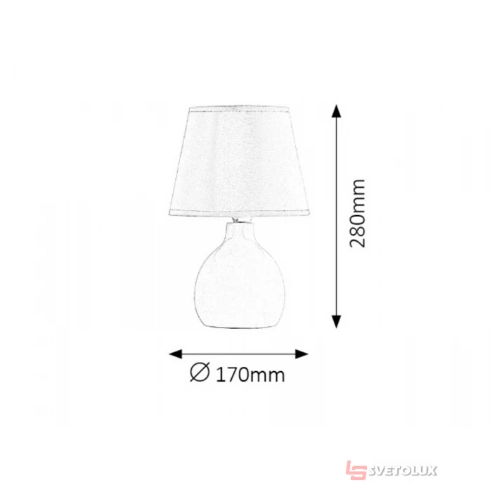 Технічні дані - E14 1X MAX 40W. Лампа в комплекті - ні. Висота: (mm) - 280. Діаметр (mm) - 170. Доп. інфо - з вимикачем. Штрих-код - 5998250344751. Вага нетто (кг) - 0,578. Артикул плафона - 19534. Матеріал світильника - кераміка. Матеріал плафона: - текстиль. Арт.: P26-4475