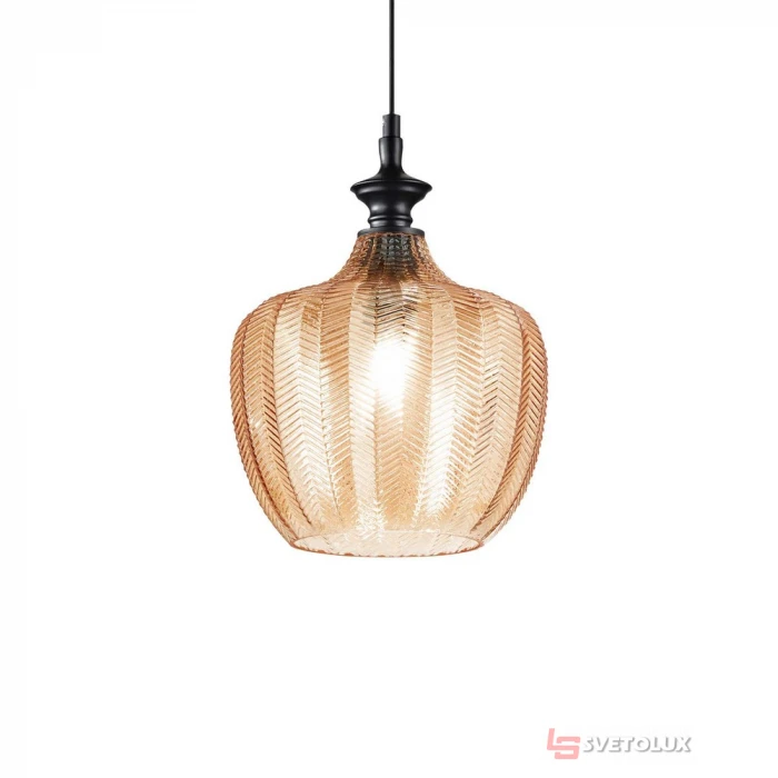 Стельова чаша і арматура з металу порошкового забарвлення чорного кольору. Провід з чорного ПВХ. Розсіювач зі скла з рельєфними декораціями. Доступний зі склом прозорого, бурштинового або сірого кольору. Розміри: D 230 x H min 580 / max 2330 mm. Лампочка: E27 max 1 x 60W. Клас захисту: IP20. Колекція: Lord collection. Арт.: P11-263656