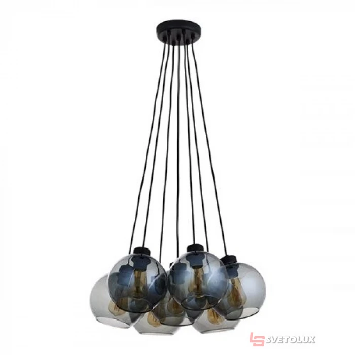 Тип: багатолампових. З особливостями: Декоративні. Тип кріплення: Підвісні. Сучасний, Лофт, Модерн. Геометрія: Півсфера, Сфера. Вид плафона: Чаша. Кріплення: На дюбеля. Ширина, мм: 550. Висота, мм: 1200. Матеріал арматури: Метал, Пластик. Колір арматури: Чорний. Матеріал плафонів: Скло. Колір плафонів: Графіт, Димчастий, Прозорий. Ступінь захисту, IP: IP20. Лампи в комплекті: Ні. Кількість ламп, шт: 7. Напруга: 220V. Тип патрона: E27. Потужність лампи, Вт: 60. Арт.: P40-2837