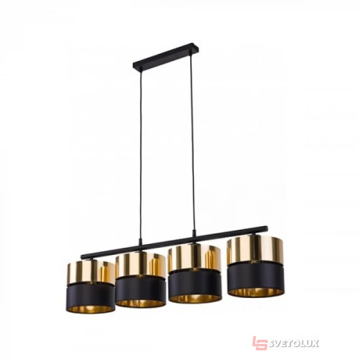 Тип: багатолампових. З абажуром. З особливостями: Декоративні. Тип кріплення: Підвісні. Стиль: Класика, Модерн. Геометрія: Циліндр, Балка. Вид плафона: Абажур, Пігулка. Ширина, мм: 950. Висота, мм: 1100. Матеріал арматури: Метал. Колір арматури: Чорний. Матеріал плафонів: Метал, Тканина. Колір плафонів: Золотий, Чорний. Ступінь захисту, IP: IP20. Лампи в комплекті: Ні. Кількість ламп, шт: 4. Напруга: 220V. Тип патрона: E27. Потужність лампи, Вт: 60. Арт.: P40-4342