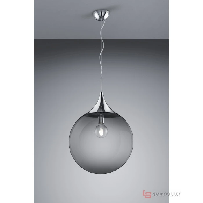 Підстава: Метал/Хром. Плафон: Скло/Димчастий. Лампа основна: Цоколь - 1 x E27; Живлення від мережі (В): 230. Розміри: Висота (см) - 150, Діаметр (см) - 45. Вага (кг): 3,3. Вологозахист: IP20. Арт.: P47-301690106