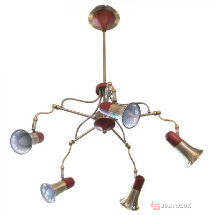 Цоколь – E14; Потужність – 40W; Напруга, V - 220V; Кількість ламп – 5; Монтаж – Накладний; Ступінь захисту оболонки, IP – IP20; Матеріал каркасу - Метал/Дерево; Колір каркасу – Старе золото/Коричневий; Колір плафона – Старе золото/Коричневий; Матеріал плафона – Метал/Дерево; Висота, h – 800mm; Діаметр, d – 500mm.