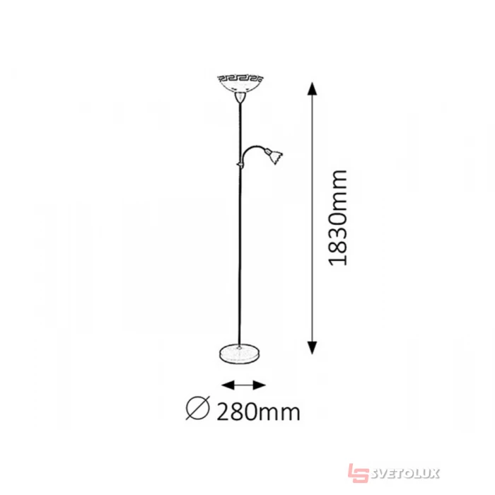 Висота мм: 1830 Ширина мм: 280, Довжина мм: 280, Кількість ламп: 1 + 1, Потужність лампи: Вт: 100 + 40, Патрон: E27 + E14, Колір: антично-коричневий, Матеріал: метал/скло, Вимикач: є Арт.: P26-6968
