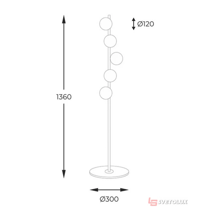 Торшер Zuma Line Luna 5662 складається з хромованою рами, на яку кріпляться 5 сферичних плафонів. Модель адаптована під лампи з цоколем G9 ( 5 шт) і максимальною потужністю 40 Вт. Димчасте скло мяко розсіює світло, створюючи оригінальну атмосферу. Підлоговий світильник Zuma Line 5662 Luna має висоту 136 см і діаметр 30 см.вимикач розташований на кабелі, завдяки чому торшер також можна розмістити у важкодоступних місцях. [5662] Арт.: P45-6953296